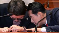 장동혁 국민의힘 대표(오른쪽)과 신동욱 최고위원이 15일 국회에서 열린 의원총회에서 귀엣말을 하고 있다. <ⓒ투자가를 위한 경- 11시간전