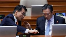 정성호 법무부 장관과 윤상현 국민의힘 의원이 15일 국회에서 열린 본회의에서 대화하고 있다. <ⓒ투자가를 위한 경제콘텐츠 플랫- 3시간전