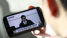 [포토] 휴대전화로 윤석열 전 대통령 1심 선고 보는 시민