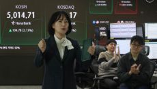 코스피가 꿈의 지수 '5000'을 돌파한 22일 서울 중구 하나은행 본점 딜링룸에서 직원들이 기뻐하며 박수를 치고 있다. 이날- 11시간전