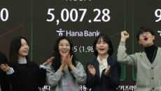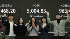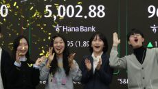 코스피가 꿈의 지수 '5000'을 돌파한 22일 서울 중구 하나은행 딜링룸에서 직원들이 기뻐하며 박수를 치고 있다. <ⓒ투자가- 12시간전