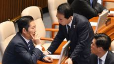 정청래 더불어민주당 대표와 박수현 수석대변인, 조승래 사무총장이 9일 국회에서 열린 본회의에서 대화하고 있다. <ⓒ투자가를 위- 6시간전