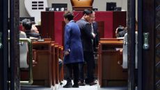 정청래 더불어민주당 대표(맨 오른쪽)가 10일 국회에서 조국혁신당과의 합당여부를 논의하기 위해 열린 비공개 의원총회 앞서 지도- 2026-02-10 15:35