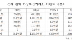 최근 3년간 빗썸이 진행한 이벤트 집행 비용이 국내 5대 가상자산 거래소 전체 집행 비용의 93%를 차지하는 것으로 나타났다.- 2026-02-10 15:39