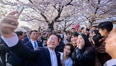 "여기도 봐주세요"…벚꽃길서 시민들과 '깜짝 셀카' 찍은 李대통령 부부