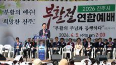 "예수 그리스도 부활의 기쁨이 이 땅 곳곳에 널리 퍼지길 기원합니다." 박완수 경남도지사가 지난 5일 오후 진주시 남강 야외무- 2026-04-06 14:12