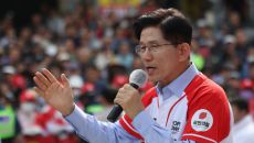 [이데일리 노진환 기자] 김문수 국민의힘 대선후보가 14일 오후 경남 밀양시 중앙로에서 열린 선거유세에서 시민들에게 연설을 하- 2025-05-14 17:16