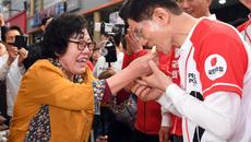 [포토]김문수 후보, '진주중앙시장 상인들과 인사'