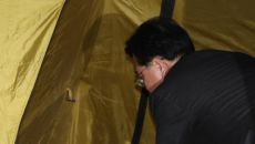 [포토]단식 투쟁 8일째, '텐트에 누워 있는 장동혁 대표'