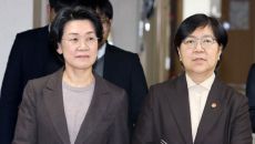 [포토] 브리핑실 향하는 정은경 복지부 장관-최은옥 교육부 차관