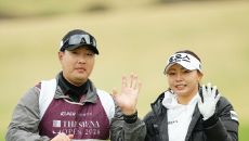 [포토]김지영,콤비 캐디와 밝은 손인사