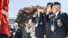 ‘가평 전투 75주년’을 맞아 24일 경기도 가평군 영연방 참전기념비를 찾은 당시 참전 용사들이 헌화 후 경례를 하는 모습.- 2026-04-25 00:47
