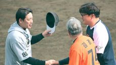 [사진]한화 김경문 감독과 인사 나누는 지바롯데와 오무라 사부로 감독