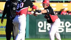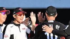 [사진]퇴장 당했던 염경엽 감독, 승리에 미소 활짝