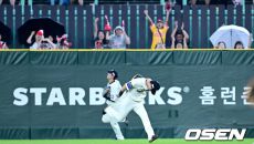 [사진]인천 홈 팬들 기쁘게 만드는 SSG 중견수 최지훈의 캐치