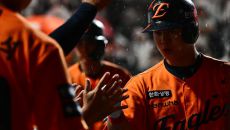[사진]노시환, 1위 탈환 세리머니