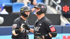 [사진] 장성우, 고영표와 솔로포 하이파이브