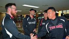 [사진]악수 나누는 네일-이범호 감독