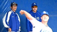 [사진]매닝 불펜 피칭 주시하는 삼성 박진만 감독과 최일언 코치