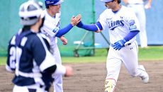 [사진]대표팀과 연습경기서 역전 스리런포 뽑아내는 삼성 양우현