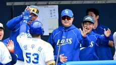 [사진]삼성 박진만 감독, 양우현 역전 스리런포에 미소 활짝'