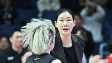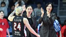 [사진] 김소니아와 하이파이브하는 박정은 감독