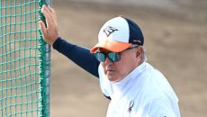 [사진]선수들 훈련 주시하는 한화 김경문 감독