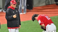 [사진] 이숭용 감독, 조병현 폴더인사에 미소 활짝