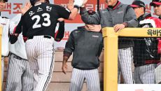 [사진]솔로포 오스틴, 염경엽 감독과 하이파이브도 강력하게