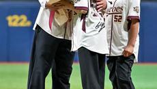 [사진]박병호 코치, '순금 20돈 로고 활용한 배트 받침대 받아'