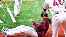 [사진]박준현,'데뷔전 승리 축하 물세례'