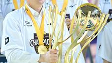 [사진]우승 트로피 들과 환하게 미소짓는 KB 김완수 감독