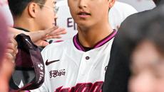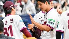 [사진]박준현,'설종진 감독에게 데뷔전 5이닝 무실점 호투 축하 받아'