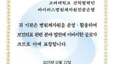 고려대 바이러스병원체자원전문은행, 질병관리청장 표창 수상