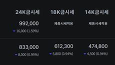 [스타데일리뉴스=서태양기자] 한국표준금거래소 1월 22일 기준 24K 금시세는 내가 살 때 3.75g당 992,000원으로,- 4시간전
