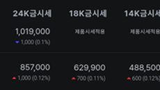 [스타데일리뉴스=서태양기자] 한국표준금거래소 2월 20일 기준 24K 순금 시세는 내가 살 때 3.75g당 1,019,000원- 3시간전