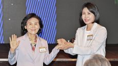 김문수 국민의힘 대선 후보 부인 설난영(왼쪽) 씨와 이재명 더불어민주당 대선 후보 부인 김혜경 씨가 12일 오후 서울 중구 신- 2025-05-13 11:32