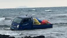 [헤럴드경제=김광우 가자] “멀쩡한 트럭, 왜 바다에 떠 있어?” 제주 해안에서 침수된 한 전기트럭의 모습. 주차된 차량이 갑- 1시간전