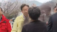 27일 경북 영양군 이재민 대피소 인근에서 검은 옷을 입은 남성이 이재명 더불어민주당 대표를 향해 옷을 휘두르는 모습. / 사- 2025-03-28 09:29