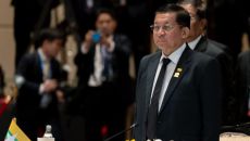 미얀마 군사정권 수장 민 아웅 흘라잉 최고사령관 / 사진=EPA 연합뉴스 미얀마 군사정권 지도자가 미얀마에 40%의 상호관세- 2025-07-12 16:09