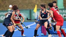 (항저우=연합뉴스) 김동찬 기자 = 한국 여자하키가 2022 항저우 아시안게임 조별리그에서 인도와 비겼다. 한진수 감독이 이끄- 2023-10-01 19:01
