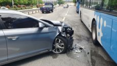 만취 음주차량이 정류장에 멈춘 시내버스 추돌…운전자 입건