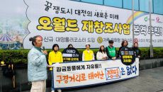 (대전=연합뉴스) 김소연 기자 = 대전충남녹색연합은 6일 대전도시공사 앞에서 기자회견을 열고 "놀이시설 중심의 테마파크를 조성- 2026-04-06 15:39