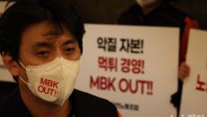 [한 컷]고려아연 주총 찾아 규탄 손팻말 든 노조들