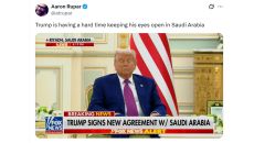 ▲ 트럼프 미 대통령 관련 동영상 엑스 사우디아라비아를 방문 중인 트럼프 미국 대통령이 생중계된 공식 행사에서 조는 듯한 모습- 2025-05-14 05:14