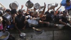 ▲ 따뜻하게 조리된 밥을 배급받기 위해 몰려든 팔레스타인 주민들 가자지구에 기근 위기는 없다고 일축해 온 이스라엘이 내부적으로- 2025-05-14 16:45