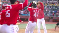 프로야구 정규리그 3위 SSG가 9회말에 터진 김성욱의 극적인 끝내기 홈런을 앞세워 삼성을 4 대 3으로 꺾고 준플레이오프 승- 2025-10-11 17:34
