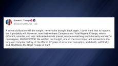 도널드 트럼프 미국 대통령이 이란에 대한 공격 유예 시한인 내일 오전 9시를 앞두고 "하나의 문명이 완전히 사라질 것"이라며- 2026-04-07 22:35