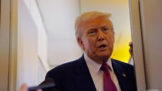 [포토]UAE 향하는 에어포스원서 기자 질문에 답하는 트럼프