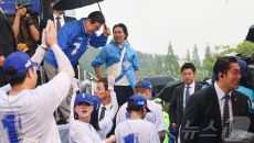 이재명 '비가 많이 오네'